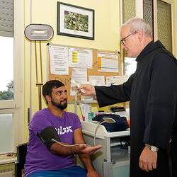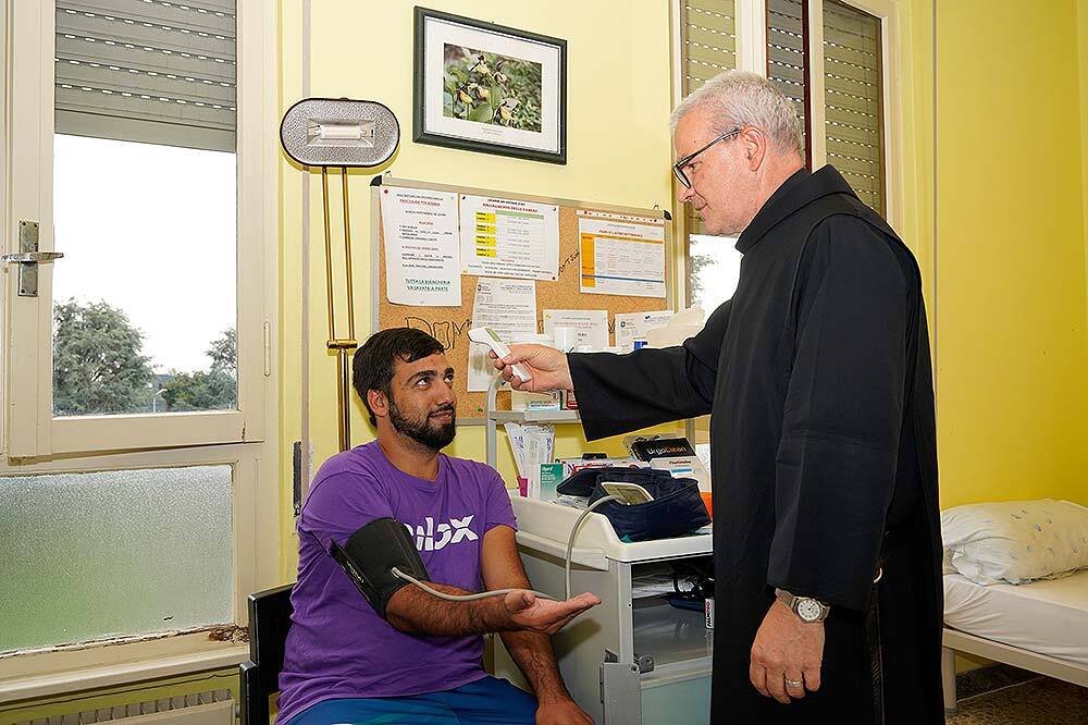 Von den 20 Plätzen finanziert die öffentliche Hand 15. Fünf Betten trägt der Orden, sozusagen als „San-Giovanni-di-Dio-Plätze“: niedrigschwellig, unbürokratisch, kostenlos. Freiwillige schließen die Lücken: Pflegekräfte kommen regelmäßig, ein Arzt schaut vorbei, Verbände werden gewechselt, Medikamente sortiert, Beschwerden abgefangen, bevor sie wieder zu Krankenhausfällen werden.