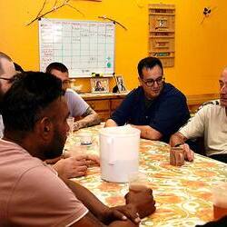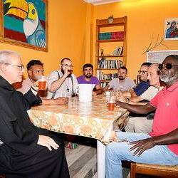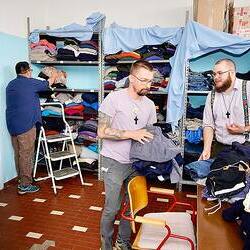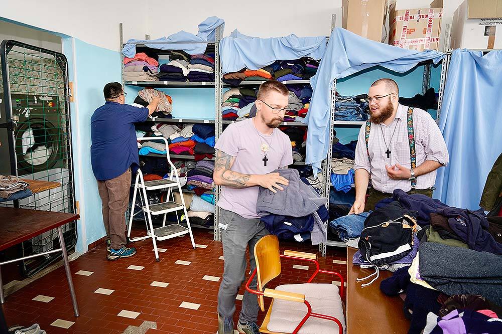 Eine besondere Rolle spielen die Novizen. Sie arbeiten im zweiten Ausbildungsjahr dort fast täglich mit. Für sie ist es eine prägende Zeit: Sie begegnen den Menschen direkt. Sie helfen, wenn jemand betrunken zurückkommt, begleiten ihn zur Dusche oder bringen ihn ins Bett. Die Arbeit ist konkret. Die Novizen lernen anzupacken. „Hier kann man Mensch sein, ohne Handschuhe“, sagen sie – nicht als Romantik, „sondern als Realität, die riecht und fordert“.